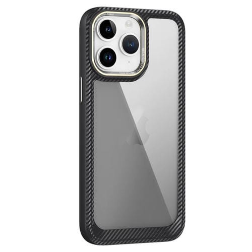 Pour iPhone 11 Pro Max Coque de téléphone en fibre de carbone avec panneau arrière transparent (noir + noir transparent)