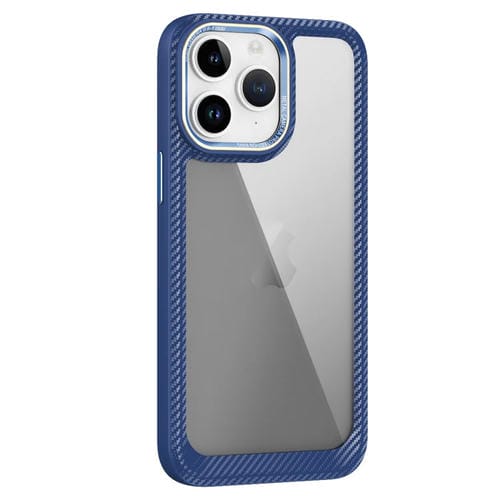 Pour iPhone 11 Pro Max Étui de téléphone à panneau arrière transparent en fibre de carbone (bleu)