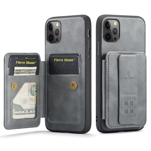 Funda para Teléfono Fierre Shann iPhone 11 Pro Max Oil Wax con Tarjetero de Cuero de Vaca (Gris)