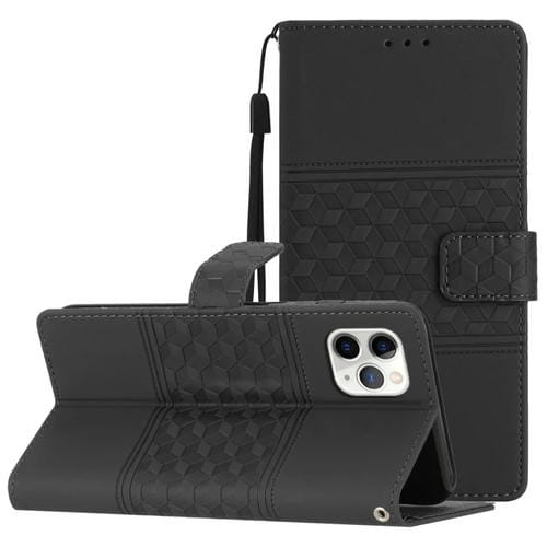 Funda para Teléfono iPhone 11 Pro Max Cuero Tacto de Piel En Relieve con Cordón (Negro)