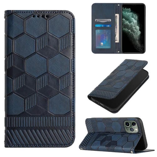 Funda de teléfono iPhone 11 Pro Max con tapa de cuero magnético textura de fútbol (Azul Oscuro)