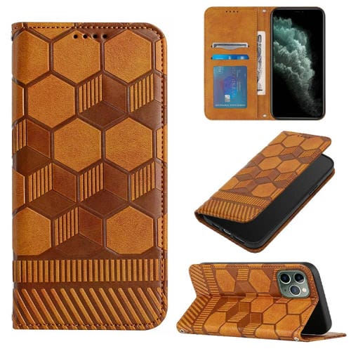 Funda de Teléfono para iPhone 11 Pro Max con Tapa de Cuero Magnético y Textura de Fútbol (Caqui)