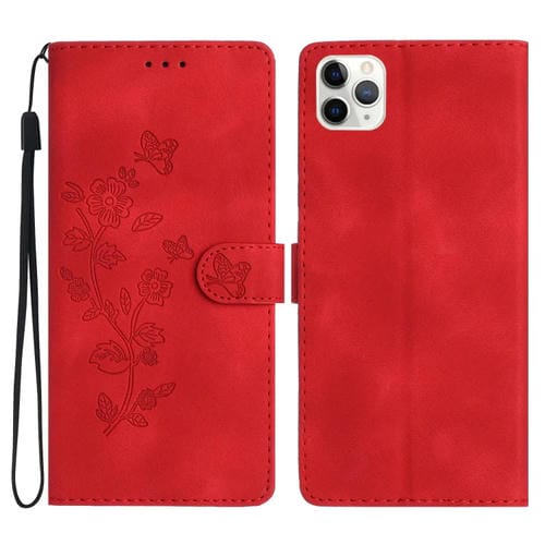 Funda de Teléfono iPhone 11 Pro Max Cuero Estampado Flores En Relieve (Rojo)