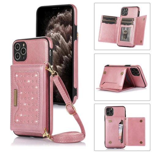 Funda de Teléfono Cuero Rfid para iPhone 11 Pro Max Tres Pliegues con Cordón (Oro Rosa)