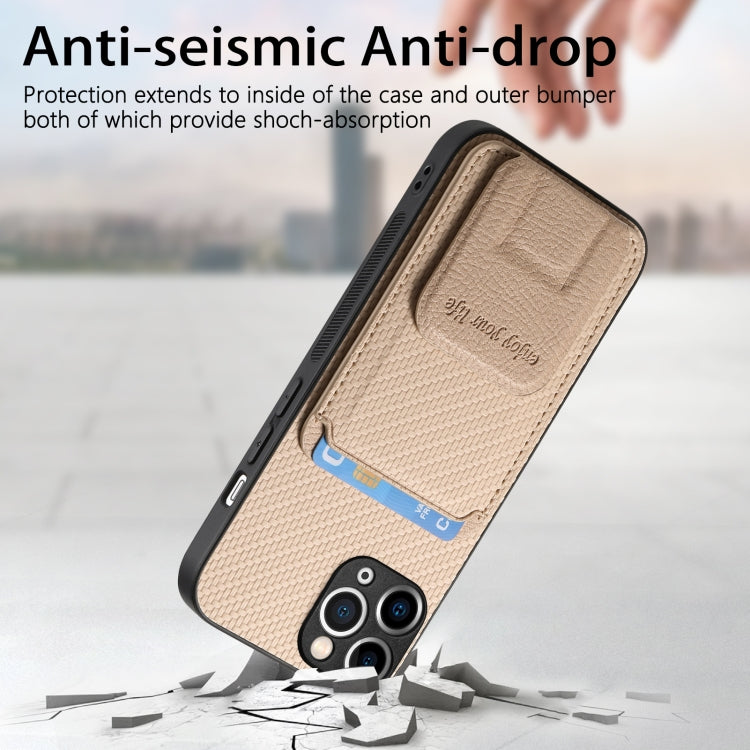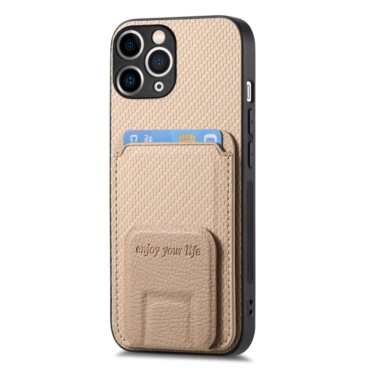 Funda para Teléfono iPhone 11 Pro Max con Soporte Plegable y Bolsa para Tarjetas Fibra de Carbono (Caqui)