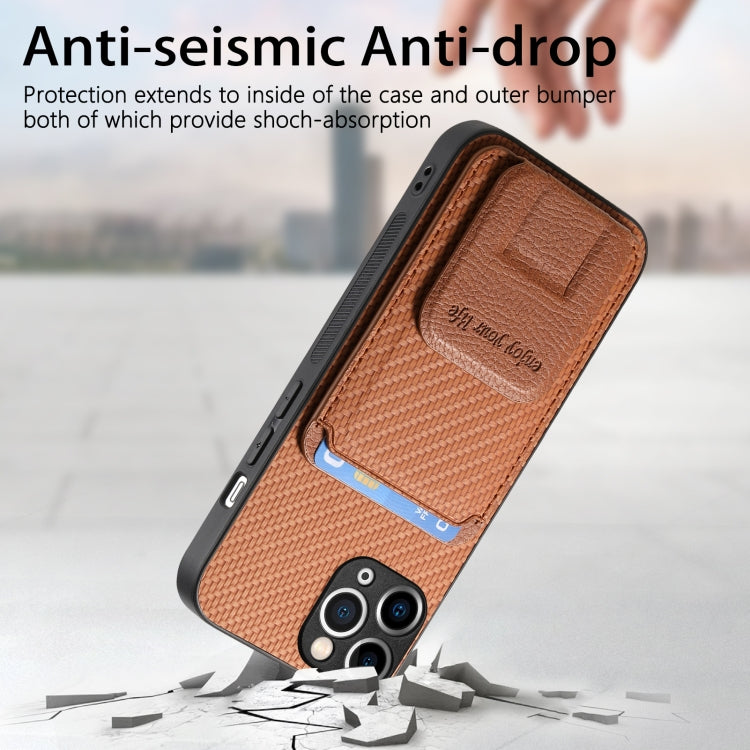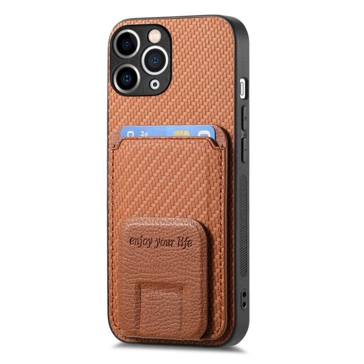 Funda para Teléfono iPhone 11 Pro Max con Soporte Plegable y Bolsa para Tarjetas Fibra de Carbono (Marrón)