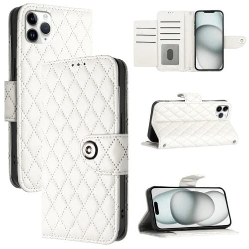 Funda para Teléfono iPhone 11 Pro Max Tapa Cuero Textura Rómbica Cordón (Blanco)