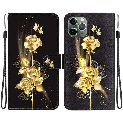Funda para Teléfono iPhone 11 Pro Max Cuero Dibujo Coloreado Textura Cristal (Mariposa Dorada Rosa)