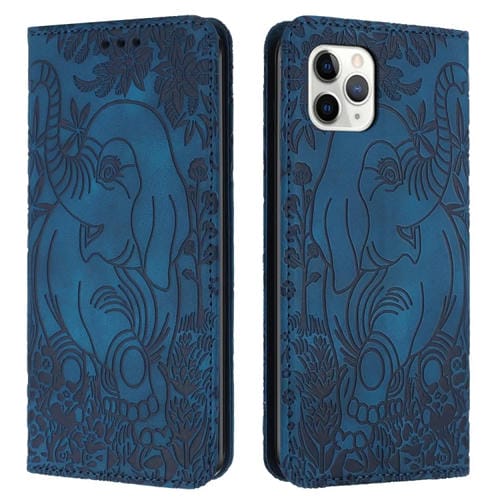 Funda para Teléfono iPhone 11 Pro Max Cuero con Relieve de Elefante Retro (Azul)