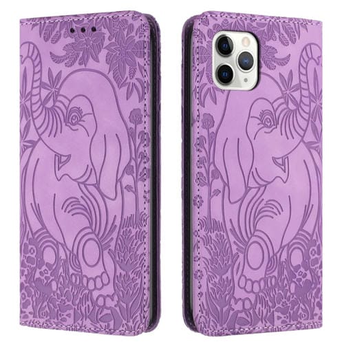 Funda para Teléfono iPhone 11 Pro Max Cuero Relieve Elefante Retro (Púrpura)