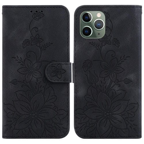 Funda para Teléfono iPhone 11 Pro Max Cuero con Relieve Lily (Negro)