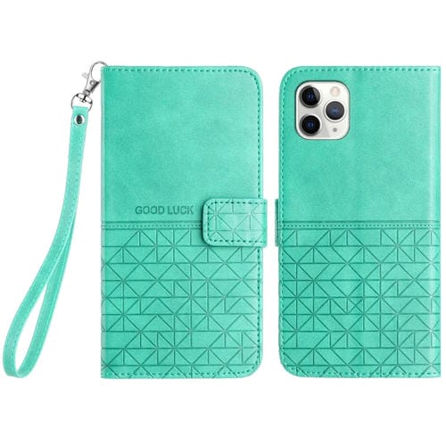 Funda para Teléfono iPhone 11 Pro Max Cuero Textura Rómbica con Cordón (Verde)