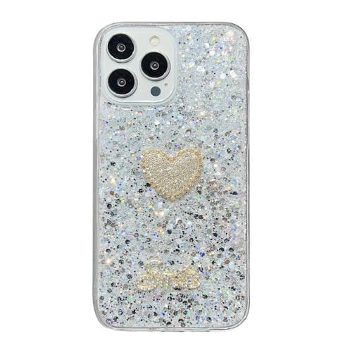 Funda para Teléfono TPU Epoxi iPhone 11 Pro Max Corazón Diamante Lentejuelas (Plateado)