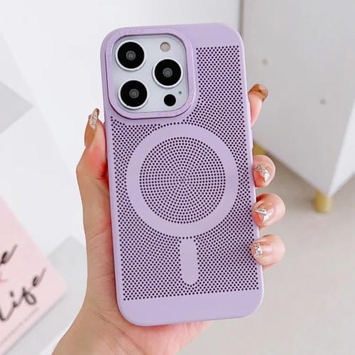 Pour iPhone 11 Pro Max Grid Cooling MagSafe Étui de téléphone magnétique (Lilas)