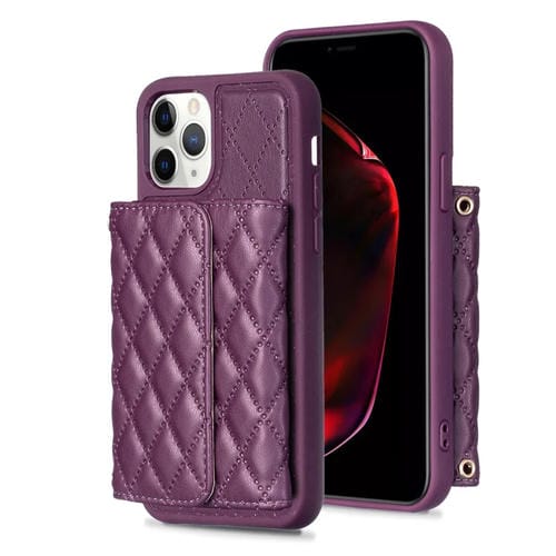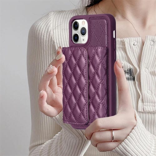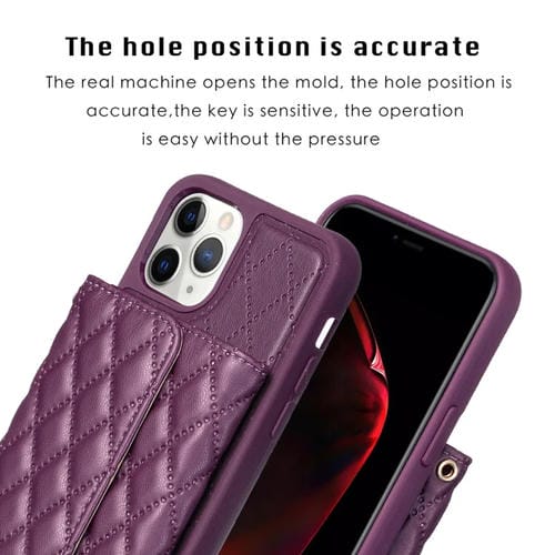 Funda para iPhone 11 Pro Max Horizontal Wallet Rhombic Cuero (Púrpura Oscuro)