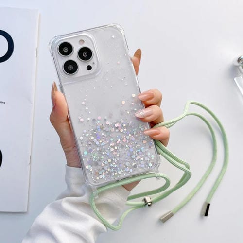 Funda para iPhone 11 Pro Max Lanyard Glitter Epoxy Clear Phone Case (Verde)