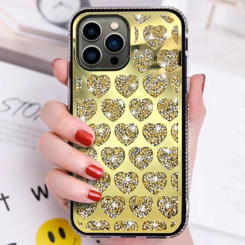 Funda para iPhone 11 Pro Max Love Hearts Diamond Mirror TPU Phone Case (Oro)