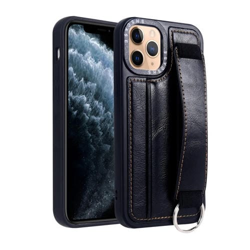 Funda para iPhone 11 Pro Max Marco de Fotos Tarjeta Monedero Correa para la Muñeca Contraportada (Negro)