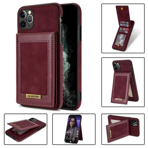 Estuche para Teléfono N.Bekus iPhone 11 Pro Max Rfid con Ranura para Tarjeta y Tapa Vertical (Rojo Vino)
