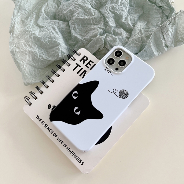 Funda para iPhone 11 Pro Max Painted Pattern PC Phone Case (Black Cat)