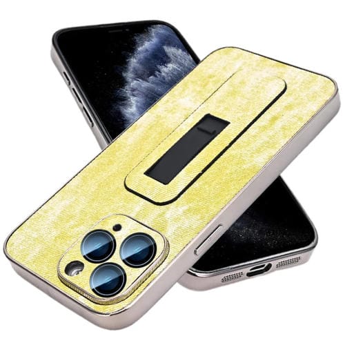 Caja de teléfono de enfriamiento para iPhone 11 Pro Max patrón de mezclilla con soporte push-pull galvanizado (Amarillo Verde)