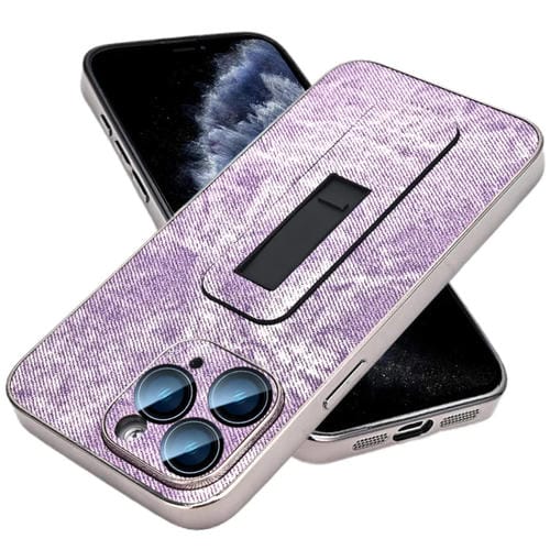 Caja de Teléfono de Enfriamiento para iPhone 11 Pro Max Patrón de Mezclilla con Soporte Push-Pull Galvanizado (Rosa Púrpura)