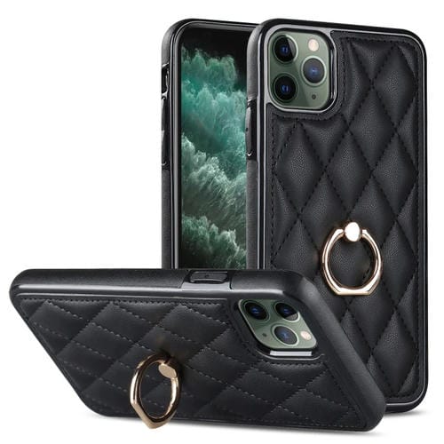 Funda para iPhone 11 Pro Max Rhombic PU Cuero con Soporte para Anillo (Negro)