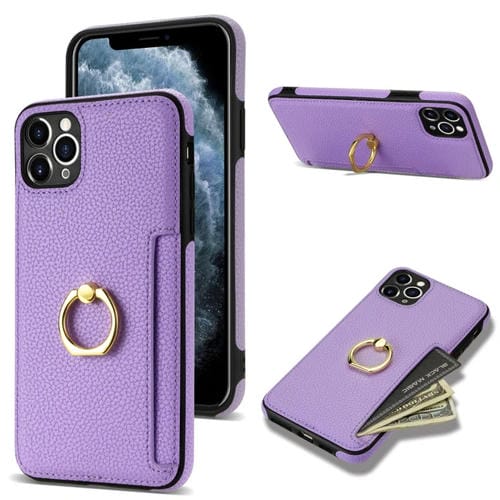 Funda Trasera para iPhone 11 Pro Max Ring Card Litchi Cuero (Púrpura)
