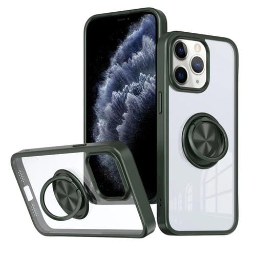 Funda para teléfono iPhone 11 Pro Max Ring Holder PC Hybrid TPU (Verde)