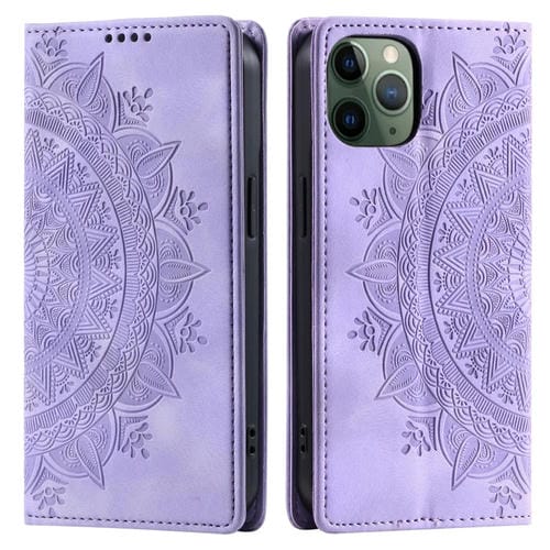 Funda de Cuero Magnética Totem para iPhone 11 Pro Max en Relieve (Púrpura)