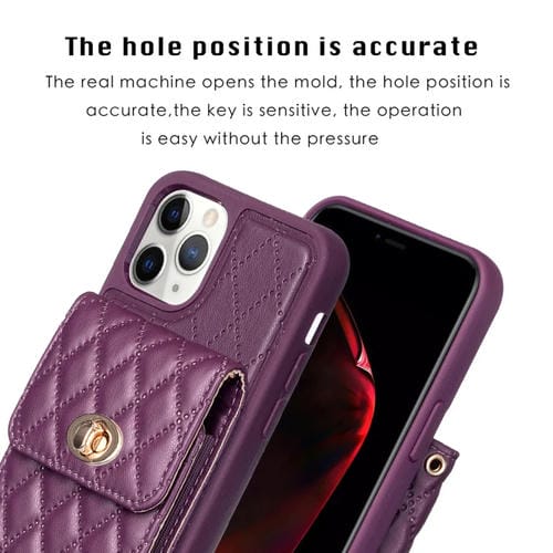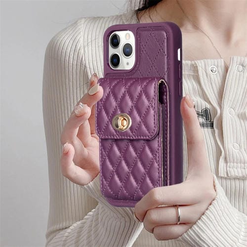 For iPhone 11 Pro Max Vertical Metal Buckle Rhombic Leather Phone Case (Dark Purple)