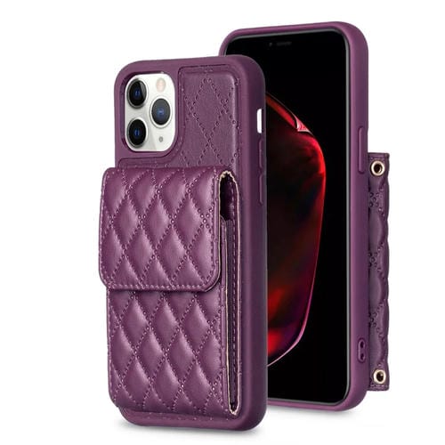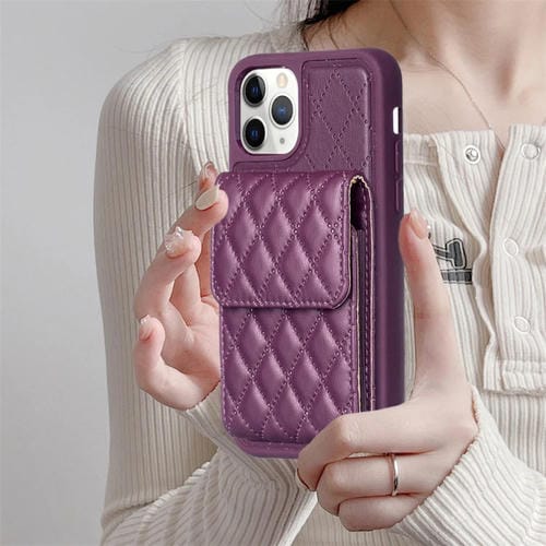 Funda para Teléfono iPhone 11 Pro Max Vertical Wallet Rhombic Cuero (Púrpura Oscuro)