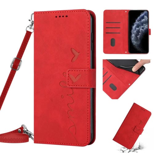 Funda de cuero para teléfono iPhone 11 Pro Skin Feel Heart Pattern con cordón (Rojo)