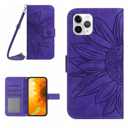 Funda de Cuero para iPhone 11 Pro Skin Feel Sun Flower Pattern con Cordón (Morado Oscuro)