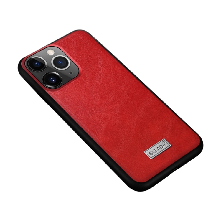 Funda para iPhone 11 Pro Sulada TPU a Prueba de Golpes y Cuero Hecha a Mano (Rojo)