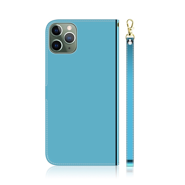 Estuche de Cuero para iPhone 11 Pro Superficie de Espejo con Tapa Horizontal Soporte Ranuras Tarjetas Billetera Cordón (Azul)