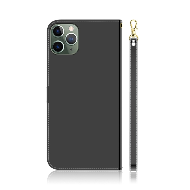 Estuche de Cuero para iPhone 11 Pro Superficie de Espejo con Tapa Horizontal Soporte Ranuras y Cordón (Negro)