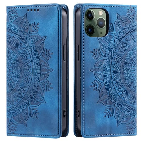 Funda de Teléfono Totem para iPhone 11 Pro Cuero Magnético En Relieve (Azul)