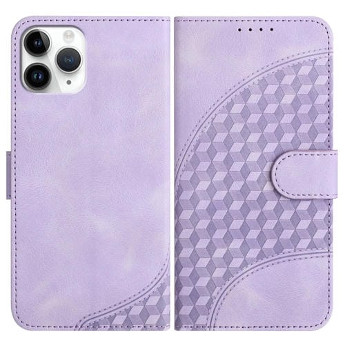 Funda de Cuero iPhone 11 Pro Yx0060 con Relieve y Cabeza de Elefante con Cordón (Púrpura Claro)
