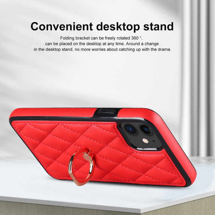 Funda de teléfono Rhombic para iPhone 11 PU Cuero con soporte para anillo (Rojo)