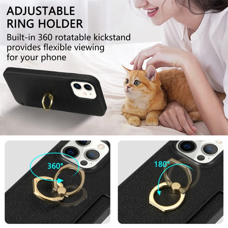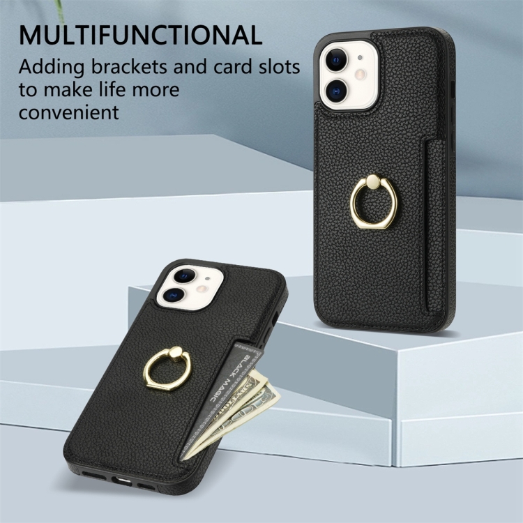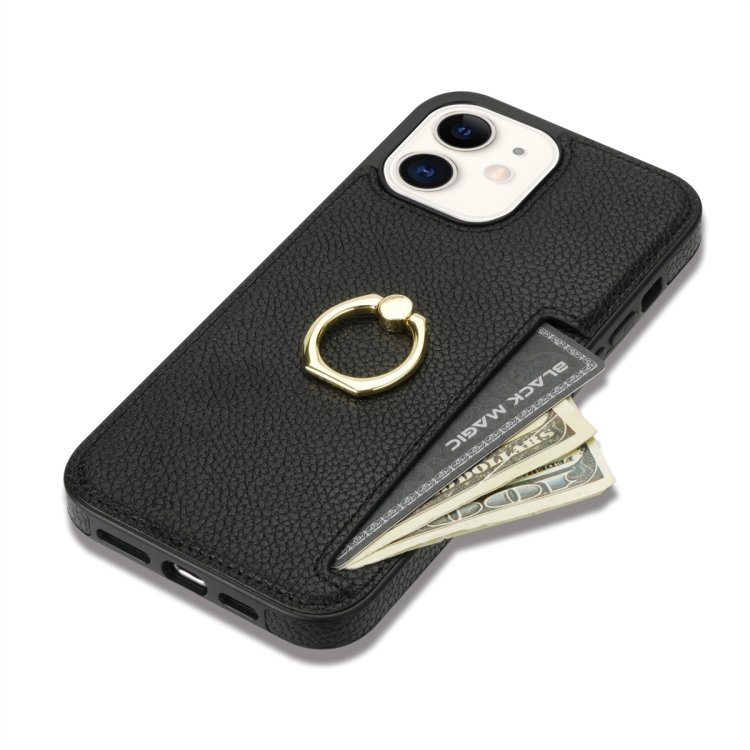 Funda Trasera para iPhone 11 Ring Card Litchi Cuero (Negro)
