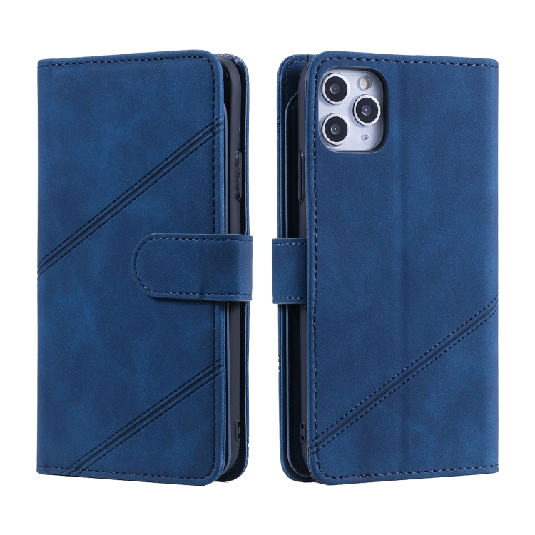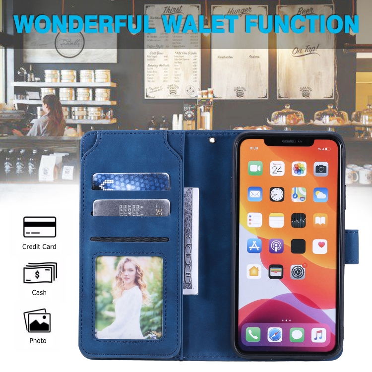 Funda para iPhone 11 Skin Feel Business Cuero PU Tapa Horizontal Soporte Tarjetas Billetera Cordón Marco Fotos (Azul)