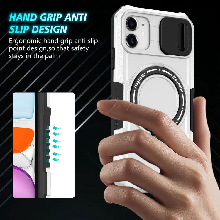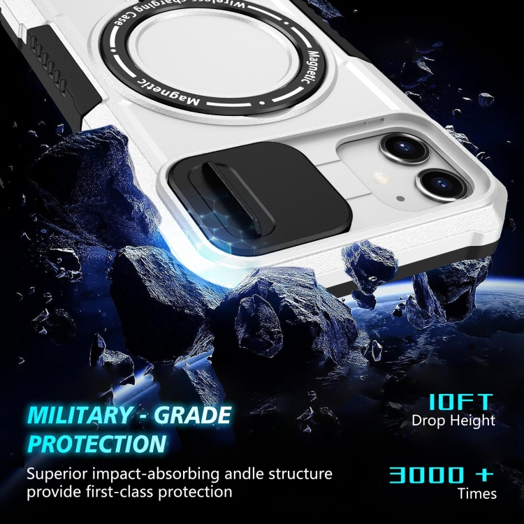 Funda para teléfono iPhone 11 Sliding Camshield Magsafe Holder TPU Hybrid PC (Negro Blanco)
