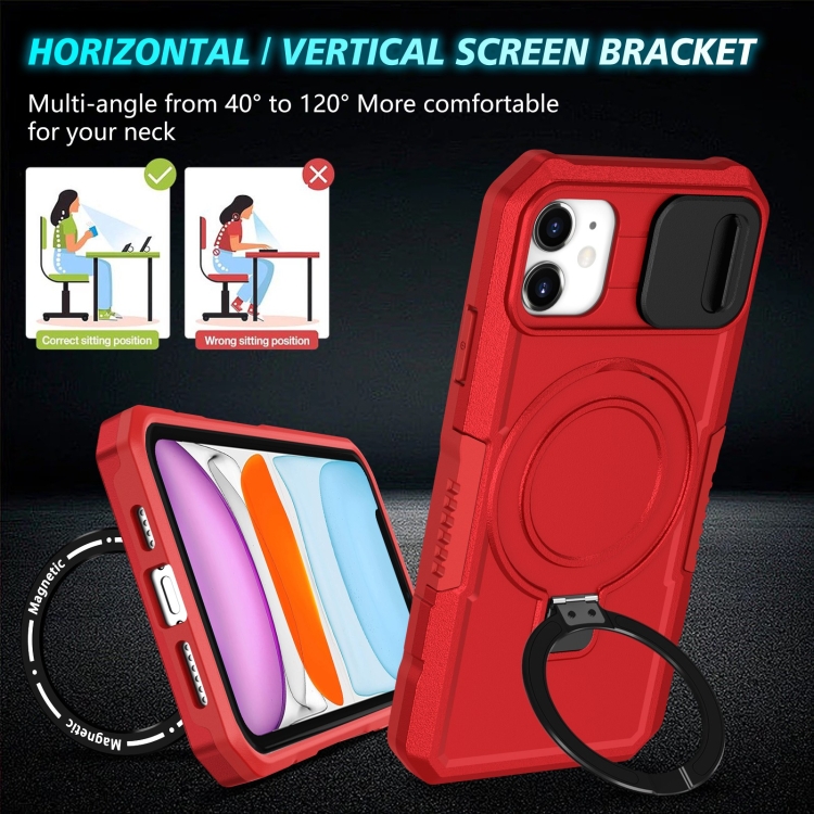 Funda para Teléfono iPhone 11 Sliding Camshield Magsafe Holder TPU Hybrid (Rojo)