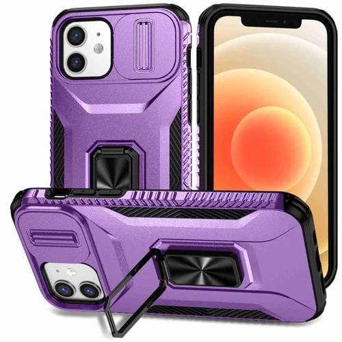 For iPhone 12/12 Pro Phone Case with Cam Shield Slide Holder (Purple)