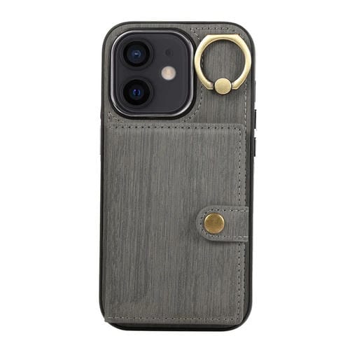 Funda para Teléfono iPhone 12/12 Pro con Soporte para Anillo y Billetera con Textura Cepillada (Gris)