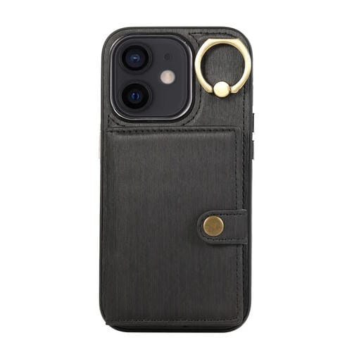 Funda para Teléfono iPhone 12/12 Pro con Soporte para Anillo y Billetera con Textura Cepillada (Negro)