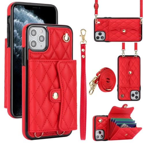 For iPhone 12/12 Pro Crossbody Rhombus Horizontal Wallet Leather Phone Case(Red)
