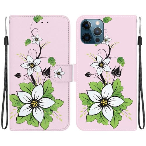 Funda para Teléfono iPhone 12/12 Pro Cuero Dibujo Coloreado Textura de Cristal (Lirio)