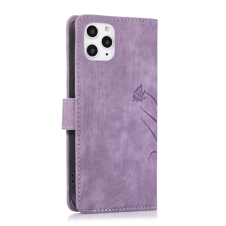 Funda para Teléfono iPhone 12/12 Pro Cuero con Relieve Mariposa Orquídea (Púrpura)